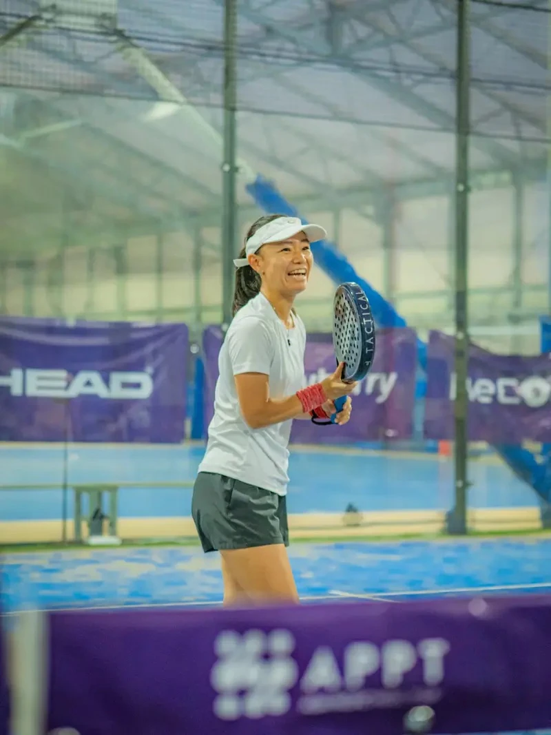 パデル選手をしている徳本佳恵と申します。個人では世界ランキング50位以内、団体戦では日本がトップ8入りするという目標に向かって日々練習に励んでいます。
